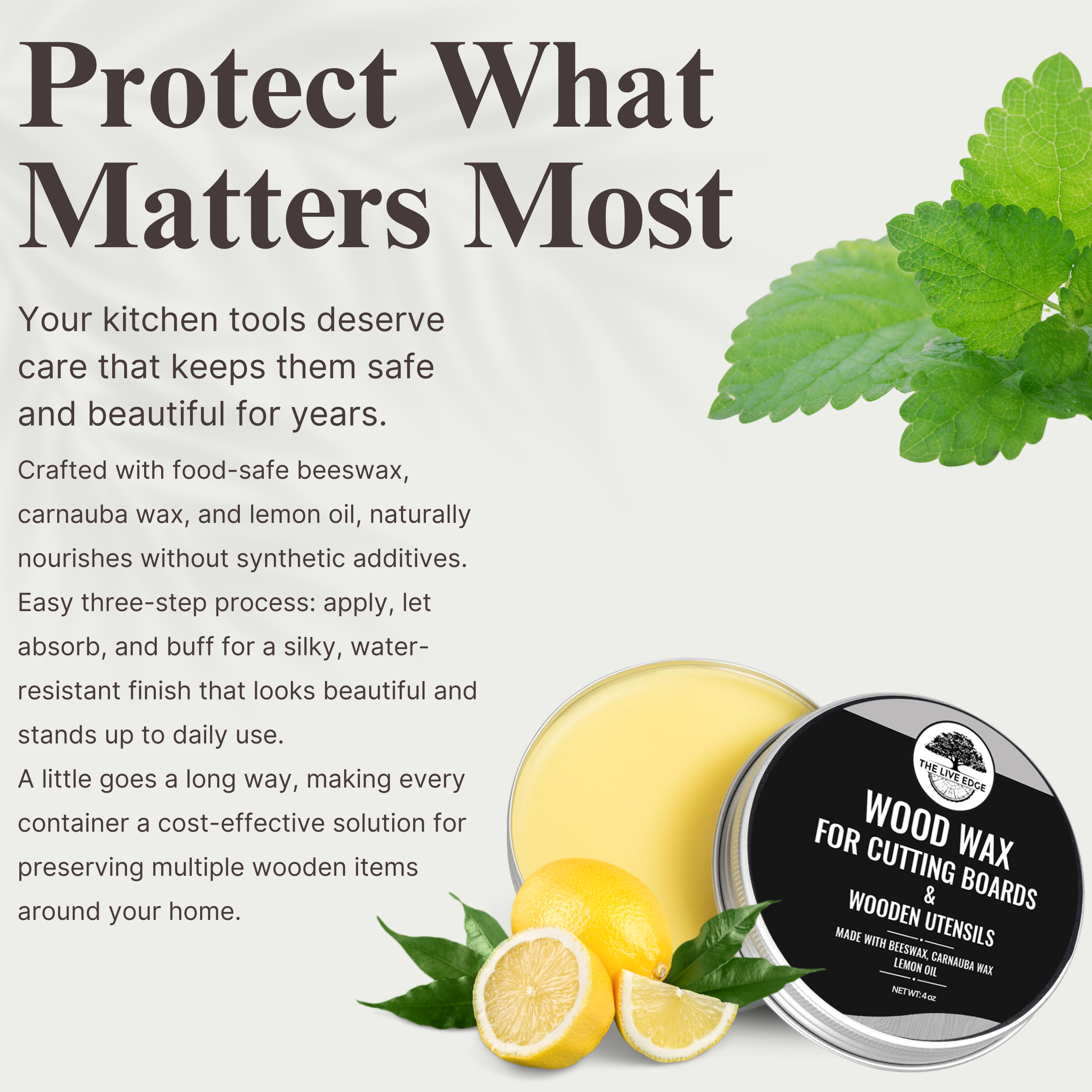 - Revives And Protects Wooden Surfaces: The Live Edge wood wax nourishes deeply to prevent cracks, dryness, and fading, preserving the natural look of cutting boards, butcher blocks, and furniture.